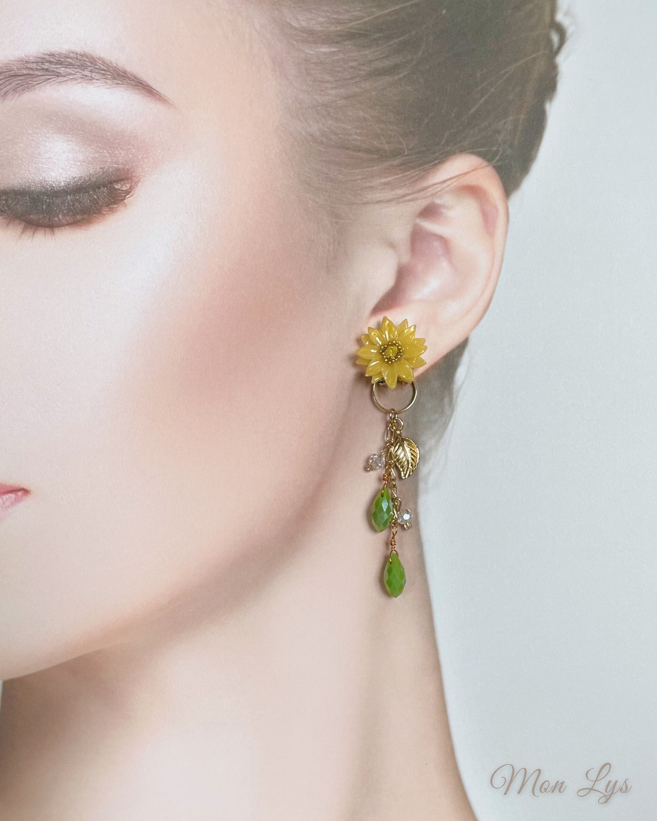 【受注制作】〈2way〉日差しに煌めく向日葵の耳飾り1(イヤリング)