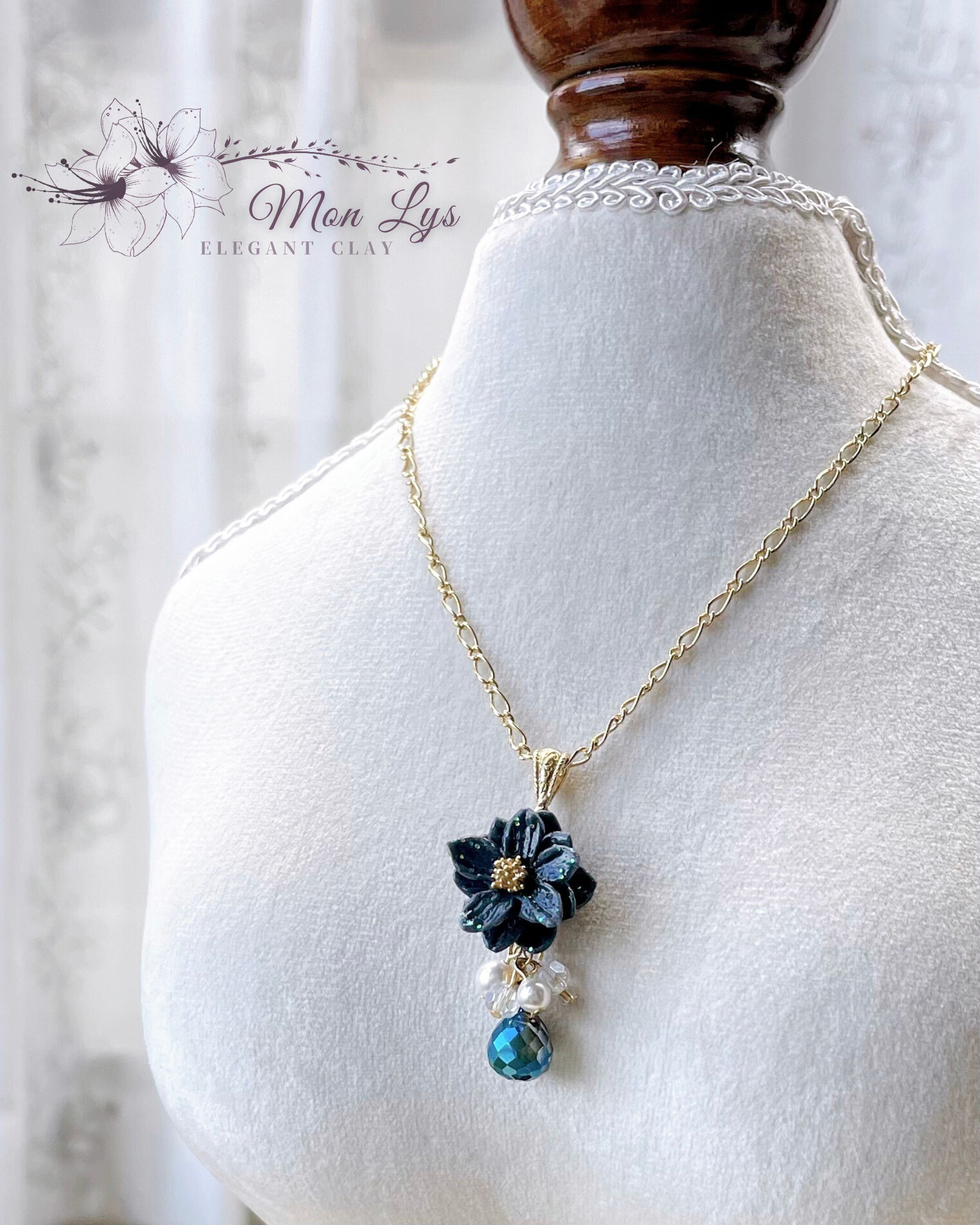 ブラックスワン✴︎クリスマスローズのネックレス